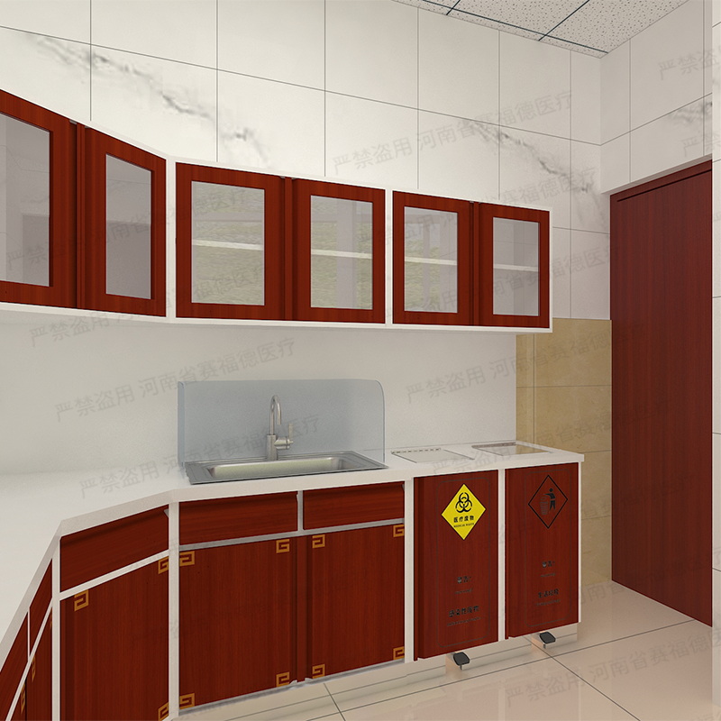 赛福德医疗处置柜的特点十分突出。在材质方面,柜体采用≥1.5mm的上海宝钢品牌SECC电解钢板,这种电解钢板是在冷轧钢板基础上深加工电解上一层锌,相比冷轧钢板具有防锈的功能,暴露在空气中和遇水都不会生锈,而且表面光滑、平整,不易损伤。横支撑采用40253.0mm电解钢板,保证了柜体的稳定性和坚固性。在设计上,赛福德医疗充分考虑了医疗实际使用场景和患者的需求。例如,处置柜进行了圆角处理,可以减少不必要的意外伤害,扶手端头的曲面处理符合人轻扶时的手心曲线,功能上也是为了缓冲人体接触,大大提升了安全性。同时,在处置室和治疗室制作互通式垃圾柜,从治疗室投入医疗垃圾,再从处置室取走,防止治疗室洁净区造成污染。此外,处置柜还可以根据客户的需求选择不同的台面材质,如人造大理石面板、亚克力板、实芯理化板、陶瓷面板等。人造大理石面板具有耐酸耐碱的性质,抗污染不渗透、不变形不上色、无缝隙易清洁打理,耐刮损、耐冲击、耐高温、抗紫外线、抗污垢、防火,以及具有阻燃性等技术特点,符合医院环境卫生要求。